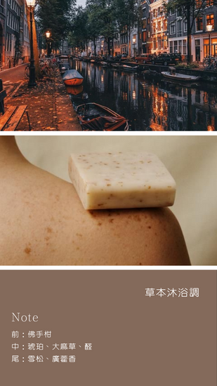 此款香味設計模擬大麻葉的氣味,創造愉悅放鬆的心情,正如我漫步在美麗運河旁的心境感受,毫不費力地感受生活中的鬆弛。